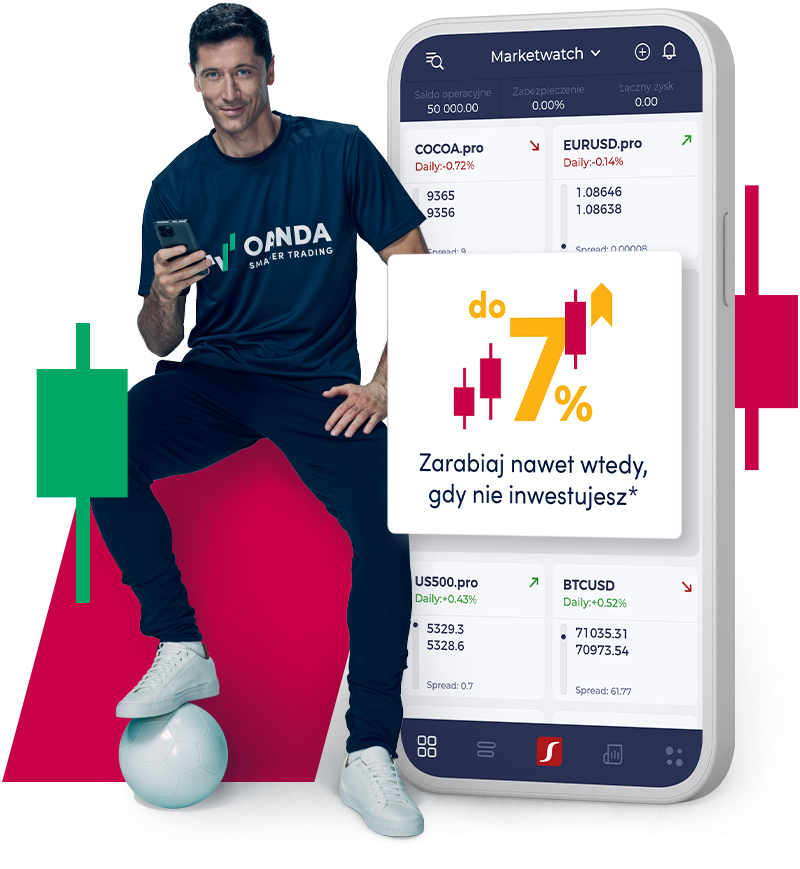 Z kontem OANDA TMS możesz inwestować w instrumenty z całego świata. W naszej ofercie znajdziesz ponad 4000 instrumentów, w tym forex, akcje, ETF-y, a także kontrakty na akcje, indeksy, surowce, fundusze ETF i kryptowaluty.