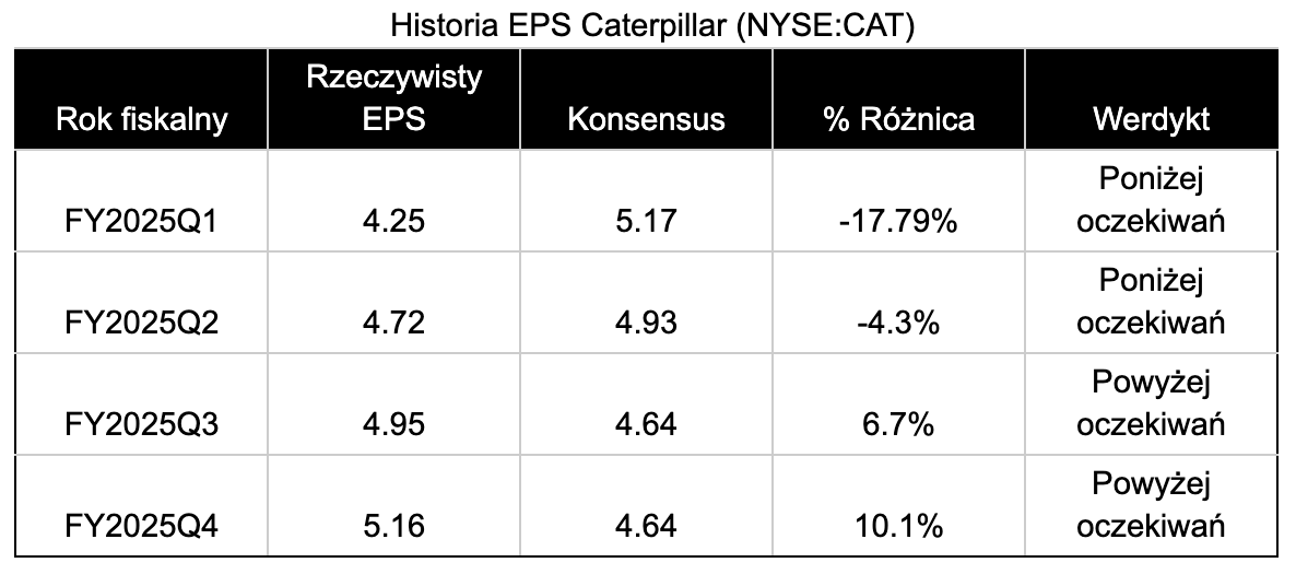 Historia EPS Caterpillar (NYSE:CAT), https://investors.caterpillar.com. Wyniki osiągnięte w przeszłości nie stanowią gwarancji przyszłych rezultatów.