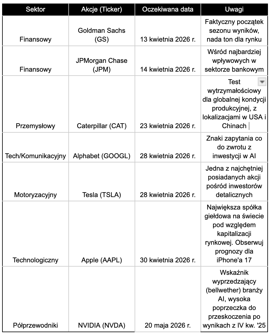 Zbliżając się do nadchodzącego sezonu wyników za I kwartał '26, oto kilka kluczowych pozycji, które warto mieć na radarze, wszystkie dostępne do handlu z OANDA: