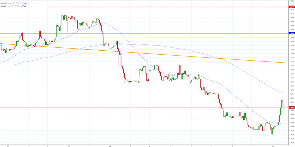 W przestrzeni EM widać wyraźny odpływ kapitału i domykanie długich pozycji na ryzykownych aktywach. Po okresie umocnienia złoty osłabia się najsilniej w regionie odreagowując wcześniejszą przewagę na lokalnymi rywalami. Przejściowo obserwowaliśmy podejście do 4,57, ale po południu kurs EUR/PLN wraca w okolice 4,5505 wymazując część strat. Odpływ kapitału od złotego ro efekt globalnych nastrojów i ważenia ryzyka przed odczytem inflacji z USA. Nie dopatrujemy się innych czynników, w tym interwencji NBP. USD/PLN oscyluje wokół 3,8290 przed publikacją, a kurs GBP/PLN osiada przy 5,2560.