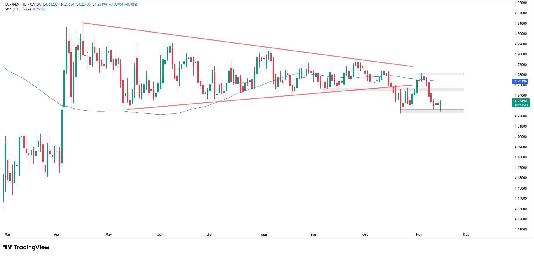 Wykres dzienny EURPLN, źródło: TradingView