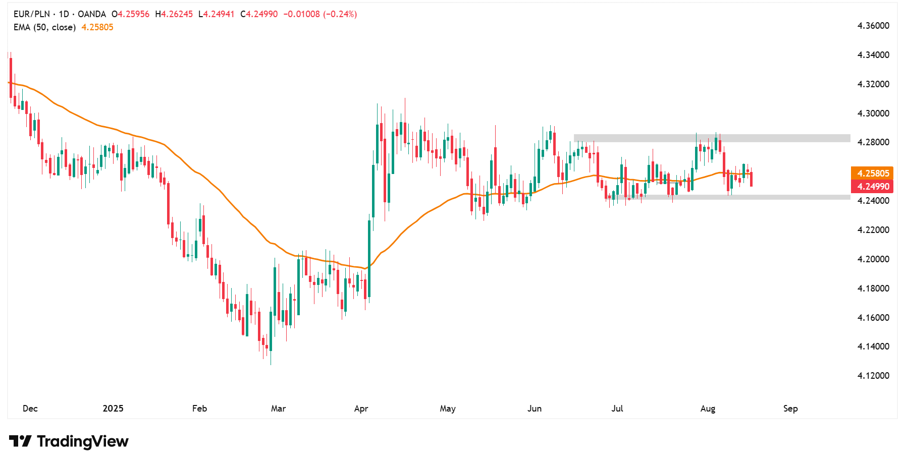 EURPLN traci dziś 0.24% i znajduje się na poziomie 4.25.