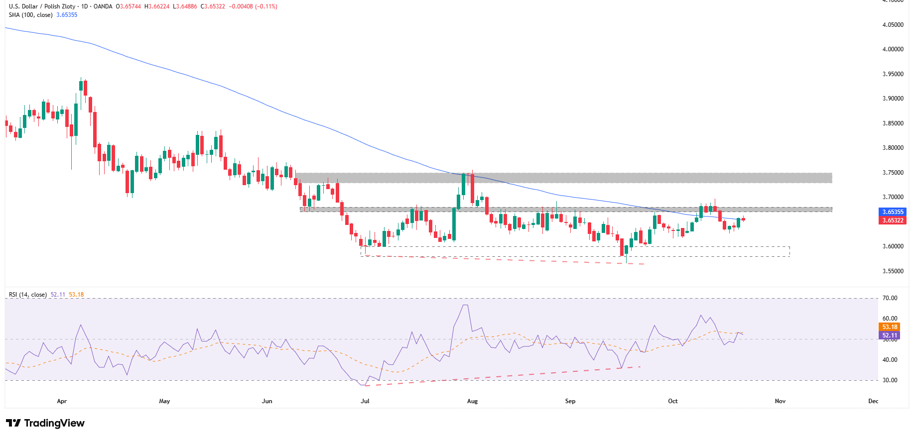 Wykres dzienny USDPLN, źródło: TradingView