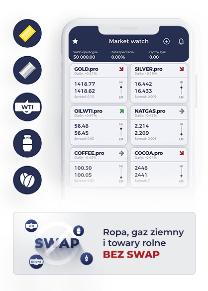 - Jedyny i wyłączny koszt w spreadzie, bez prowizji i punktów SWAP (nie dotyczy złota, srebra i miedzi)