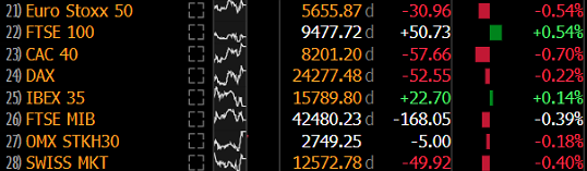 Europejskie giełdy otwierają się niżej