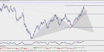 EUR/AUD oparł się na górnej bandzie kanału wzrostowego, w obrębie którego kurs porusza się od lipca bieżącego roku. Dodatkowo wypada tam zewnętrzne zniesienie Fibonacciego 150 proc., co zwiększa wydźwięk oporu. Na wykresie dziennym wyrysowało się kilka prospadkowych formacji świecowych zapowiadających zniżkowe odbicie. Scenariusz ten wspiera oscylator stochastyczny, który wygenerował sygnał sprzedaży w strefie wykupienia. Wsparciami są kolejno poziomy 1,5390 (lokalny szczyt z 26 października) i 1,5225 (szczyty z 1 czerwca i 10 października). W razie kontynuacji wzrostów następną barierą dla rynku byka będzie zewnętrzne zniesienie 161,8 proc. przy 1,5720.
