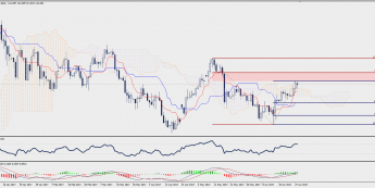 W trakcie wtorkowej sesji notowaniom USD/JPY udało się wyraźnie przebić dość kłopotliwy opór złożony z linii łączącej szczyty. Obecnie zasięg wzrostów ogranicza dolne ograniczenie chmury Ichimoku (obecnie: 110,34), której przebicie starają się urzeczywistnić prowzrostowo nastawione oscylatory. W przypadku wyjścia nad Senkou Span A należy oczekiwać zatrzymania zwyżki w okolicach średniej z ostatnich 200 notowań (obecnie: 110,81). Najbliższym wsparciem pozostaje przebita linia (obecnie: 109,58), której kapitulacja zapewni zejście w stronę serii dołków przy 108,60.