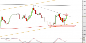 Zniesienie Fibonacciego 38,2 proc. korespondujące z poziomem overbalance przy 1,3060 skutecznie powstrzymuje rozwój impulsu wzrostowego. Powstałe na wykresie formacje spadających gwiazd wspierają zakończenie zwyżki.