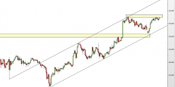 Notowania złota wczorajszy dzień zakończyły powyżej przebitej linii trendu, dlatego impuls spadkowy można potraktować jako ruch powrotny. Wtorkowa świeca ma cienie z obu stron korpusu, co świadczy o niezdecydowaniu inwestorów.