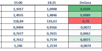 USD/CAD atakuje poziom szczytów na 1,2550, GBP/USD pokonał wsparcie na 1,5660 i zmierza na południe. AUD/USD testuje ważne wsparcie na 0,7650 a NZD/USD poziom minimów na 0,6750. Na nowe lokalne szczyty wyszedł USD/CHF.