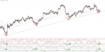 Kurs AUD/JPY dotknął od dołu krawędzi chmury Ichimoku, po czym zwyżki wytraciły impet. Wiele wskazuje, że nie jest to przystanek przed dalszą zwyżką, ale początek zmiany rynkowej tendencji.