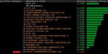 Biden jawił się jako zagrożenie dla dolara. Spadek jego szans na wygraną powoduje umocnienie amerykańskiej waluty. Trump, który odzyskał prowadzenie w Ohio i Teksasie oraz wygrał na Florydzie wyrasta na zdecydowanego faworyta bukmacherów. Inwestorzy na rynku akcji zdają się preferować taki scenariusz niż nierozstrzygnięte wybory. Dowodzić temu może, że szczytom dolara towarzyszą nowe maksima kontraktów na indeksy. W przypadku futuresa na S&P500 przekraczana jest bariera 3400 pkt a kontrakt na DAX podbija w kierunku nocnych szczytów 12250 pkt.
